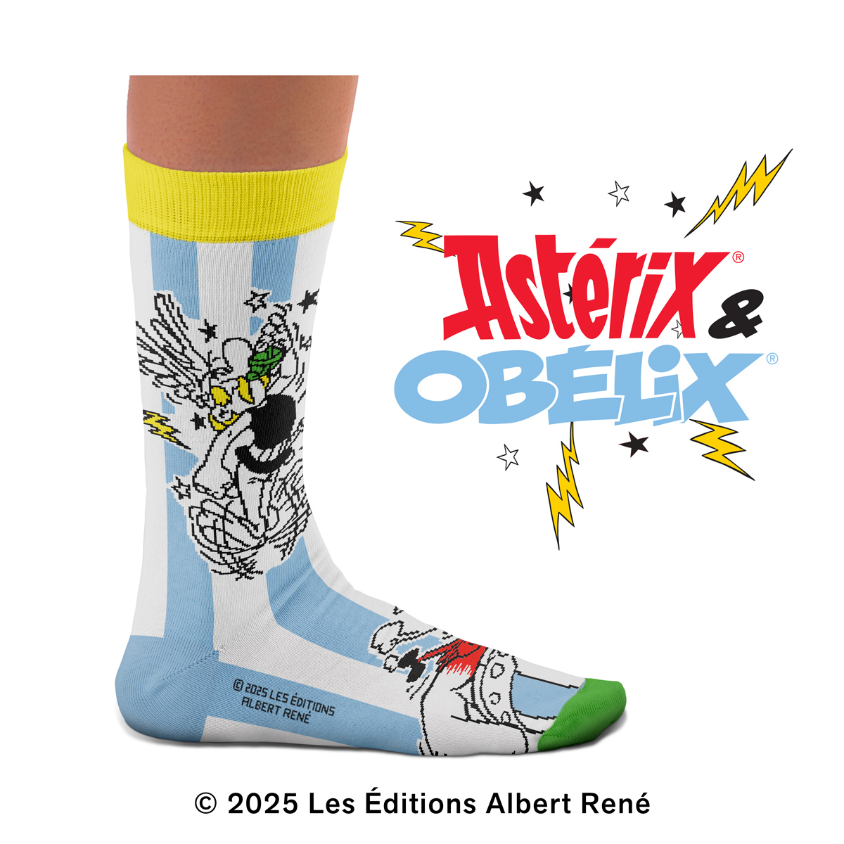 Από κάθε ρωμαϊκή αψιμαχία μέχρι κάθε κοινό γλέντι, ο Αστερίξ και ο Οβελίξ αποδεικνύουν ότι οι περιπέτειες είναι πάντα καλύτερες όταν βρίσκονται δίπλα-δίπλα. Όπως ακριβώς και ο ακλόνητος δεσμός τους, αυτές οι κάλτσες είναι φτιαγμένες για να σας υπενθυμίζουν τη δύναμη της φιλίας – πολύχρωμες, τολμηρές και έτοιμες να σας συνοδεύσουν σε κάθε ταξίδι.