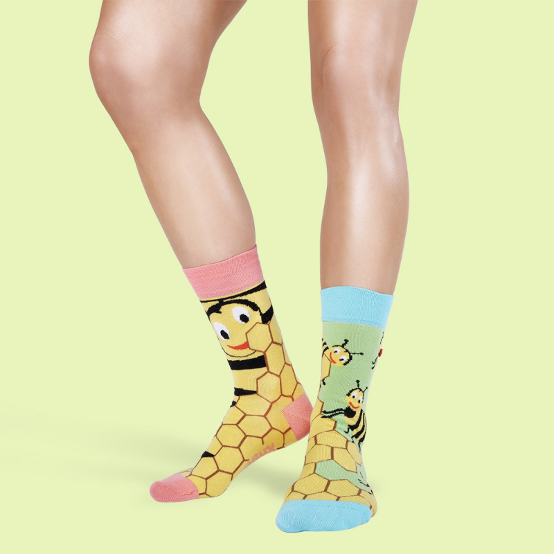 Και αυτά τα πόδια, που εννοώ, είναι δικά σου! Γιατί εκεί κάτω, σίγουρα ανήκει ένα ζευγάρι UnaBux Socks-Combo Model BEEHIVE. Το σπουδαίο είναι: κανένα πόδι δεν μοιάζει με το άλλο. Με τους συνδυασμούς καλτσών μας, πηγαίνουμε σχεδιαστικά στο επόμενο επίπεδο και δένουμε απευθείας δύο διαφορετικά σχέδια στις δύο μεμονωμένες κάλτσες. Μικτό διπλό!