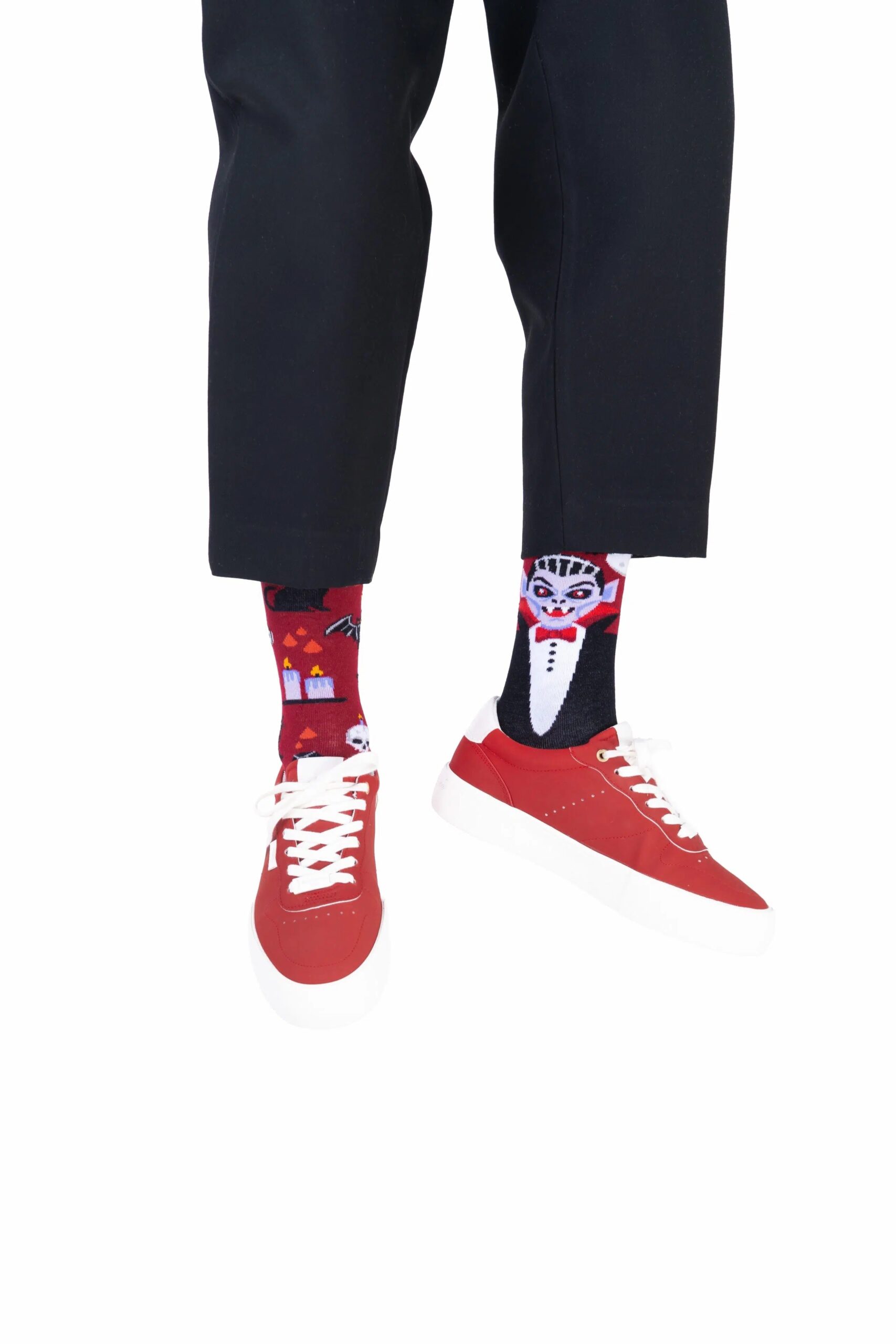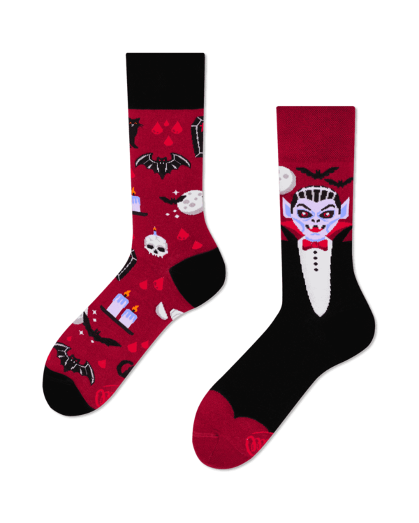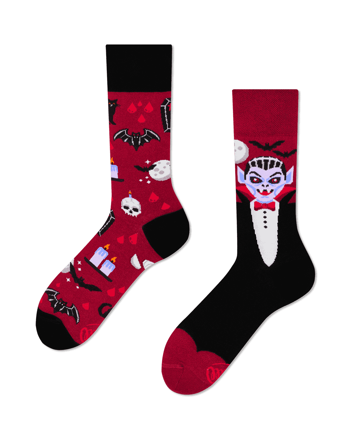 Ο Δράκουλας κυνηγάει μόνο τη νύχτα και εκτός από αίμα του αρέσουν και οι κάλτσες. Μην περιμένετε μέχρι να βγει ο ήλιος πριν βυθίσετε τους κυνόδοντες σας σε κάλτσες βαμπίρ.
