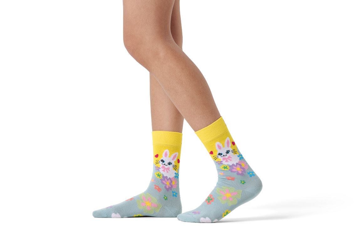 Μπείτε σε έναν κόσμο γεμάτο φαντασία με την κάλτσα Bunny World Sock μας, που διαθέτει ένα υπέροχο λιβάδι με λουλούδια και ένα αξιολάτρευτο λαγουδάκι. Σκορπίζοντας χρώμα και χαρά, ένα ζευγάρι κάλτσες τη φορά, αυτό το γοητευτικό σχέδιο σίγουρα θα φέρει ένα χαμόγελο στο πρόσωπο οποιουδήποτε. Το ζωηρό μοτίβο λουλουδιών και το παιχνιδιάρικο λαγουδάκι δημιουργούν μια διασκεδαστική και ξέγνοιαστη ατμόσφαιρα, ιδανική για όσους αγαπούν όλα τα χαριτωμένα και αστεία πράγματα. Είτε γιορτάζετε το Πάσχα είτε απλώς χρειάζεστε μια τόνωση, αυτές οι διασκεδαστικές κάλτσες είναι ο ιδανικός τρόπος για να προσθέσετε λίγη χαρά στην ημέρα σας. Τέλειο δώρο για: πασχαλινές λιχουδιές ή για τους λάτρεις της άνοιξης.