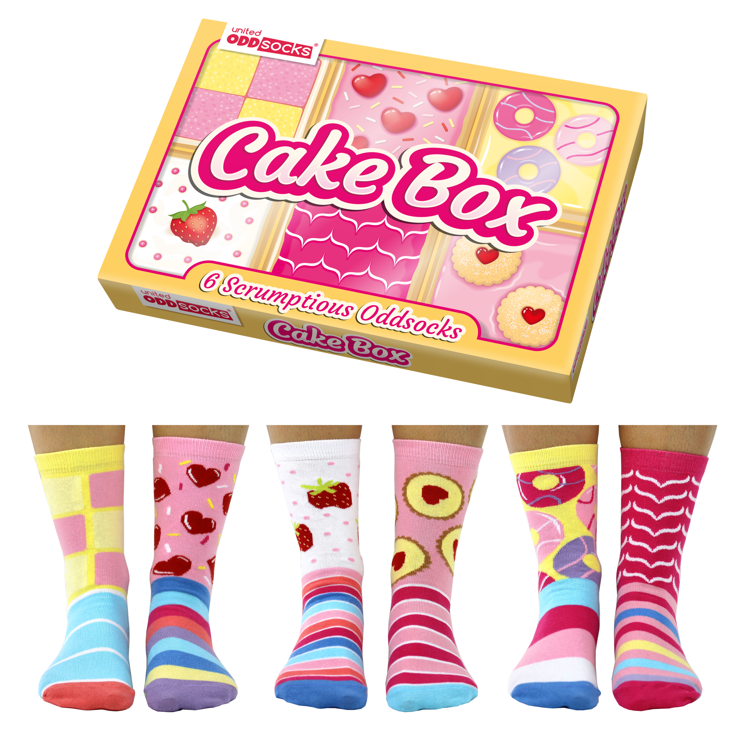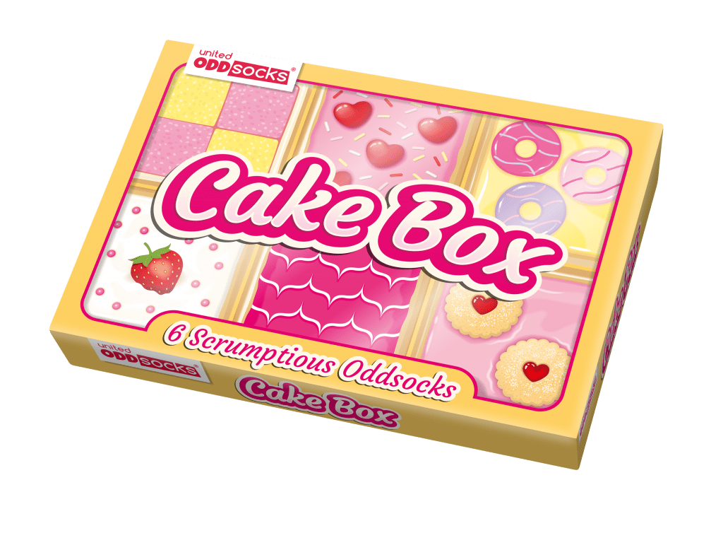 Σε ποιον δεν αρέσει το ταψί! Λοιπόν, η επιλογή μας για Cake Box είναι εξίσου μαλακή, καλαμαρώδης και γευστικά δελεαστική αλλά χωρίς καμία από τις θερμίδες! Επιλέξτε το κάλυμμα από πασπαλίσματα μέχρι μπισκότα ή γλάσο μέχρι φράουλες, 6 υπέροχα Oddsocks εμπνευσμένα από το αρτοποιείο για να τα αναμειγνύετε και να τα ταιριάζετε. Το χτύπημα χωρίς ζάχαρη, τα πόδια σας θα λατρέψουν!