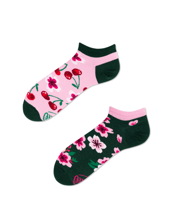 Κάλτσες καλυμμένες με άνθη κερασιάς και ζουμερά φρούτα είναι η πρότασή μας για την άνοιξη και το καλοκαίρι, που δεν μπορεί να είναι ολοκληρωμένη χωρίς φανταχτερά αξεσουάρ. Κομψό, γοητεία, επιπολαιότητα και γλυκύτητα – αυτά είναι τα επίθετα που αξίζουν αυτό το μοντέλο. Οι κοντές κάλτσες με λουλούδια και κεράσια είναι μια πρωτότυπη προσθήκη σε συναντήσεις με φίλους, ταξίδια διακοπών, εξόδους και χαλάρωση στον κήπο. Είναι πρωτότυπα όπως το ιαπωνικό αλφάβητο, εκφραστικά όπως το σάκε και μινιμαλιστικά όπως το σούσι. Και αυτό είναι αρκετό για να εκπλαγείτε από αυτά