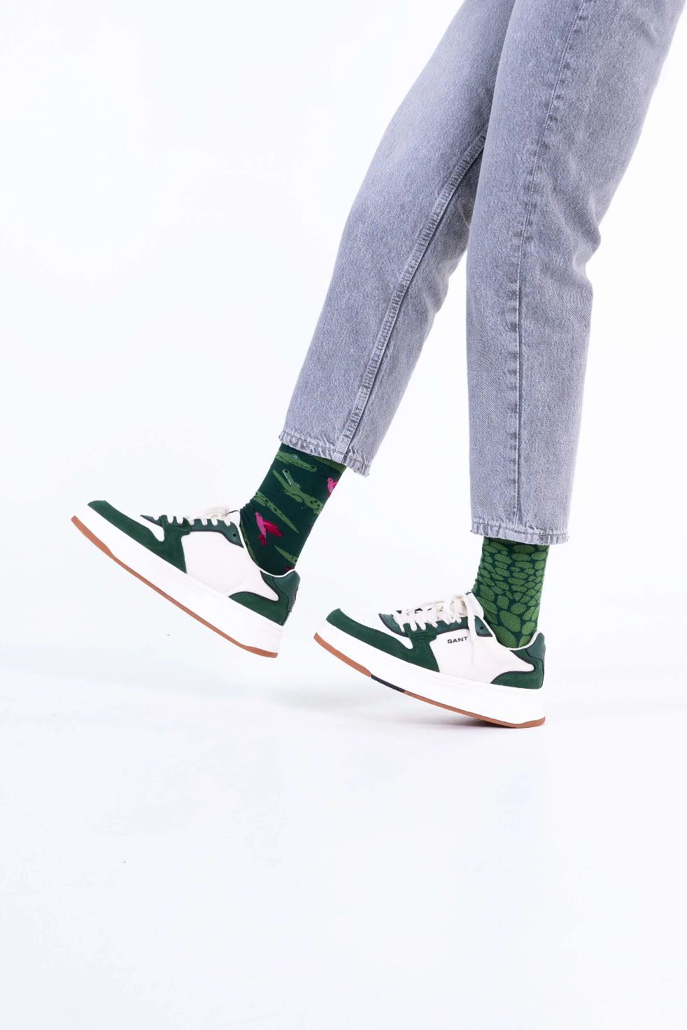 Πρωτότυπες κάλτσες για όλους τους θαυμαστές της επιτυχημένης ταινίας με τον Forfiter στον κεντρικό ρόλο. Για τους λάτρεις των ταξιδιών στις άγνωστες και επικίνδυνες περιπέτειες. Για την κουνιάδα μου, για τον πεθερό και τη θεία μου και ειδικά για τον κουνιάδο μου. Για την οικογένεια και τους φίλους. Για πλάκα. Αυτές οι καυτές πράσινες κάλτσες προσθέτουν θάρρος, αυξάνουν την αντίσταση στην επίθεση και δίνουν +10 εγρήγορση. Ακονίζουν τις αισθήσεις τους, είναι υπέροχοι στο καμουφλάζ και όταν χρειάζεται, επιτίθενται απροσδόκητα με ένα μοτίβο που κανείς δεν περιμένει. Είναι απρόβλεπτοι σαν άγριος κροκόδειλος – αλλά γι’ αυτό τους αγαπάμε.