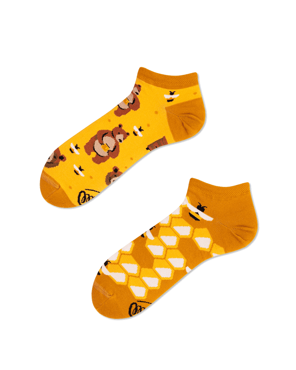 Οι απόψεις σας για τις αταίριαστες κάλτσες από το Many Mornings είναι μέλι στην καρδιά μας. Δεν αρνούμαστε ότι αποτελεί και έμπνευση για τη δημιουργία νέων μοντέλων – κάπως έτσι δημιουργήθηκαν οι γοητευτικές κυψελοειδή κάλτσες, που θα γλυκαίνουν κάθε πρωί, ακόμα και το πιο ζοφερό! Οι χνουδωτές αρκούδες και οι πολυάσχολες μέλισσες είναι ένα τέλειο σχέδιο για τους γνώστες του καλού γούστου και τους λάτρεις των πρωτότυπων αξεσουάρ. Προσοχή! Μπορεί να κολλάνε πολύ στα πόδια σας, αλλά αυτές οι κοντές κάλτσες είναι ό,τι χρειάζεστε για να προσθέσετε μια ξεχωριστή πινελιά στο στυλ σας.