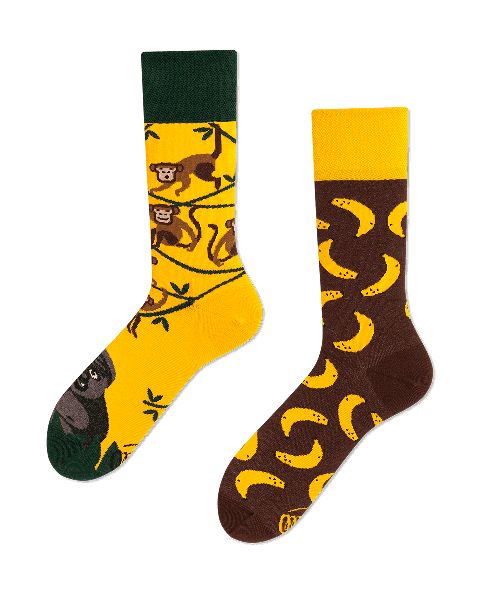 Πολύχρωμες κάλτσες για όλους όσους ασχολούνται με μαϊμούδες: στο σπίτι, σε μια συνάντηση, σε επαγγελματικό ταξίδι ή στο γραφείο, καθώς και για όσους αγαπούν τα κόλπα με μαϊμού: στο κλαμπ, στη βόλτα, στον κινηματογράφο ή στο την αστική ζούγκλα. Τα δημιουργήσαμε για να κρατήσει την μπανάνα στο πρόσωπό σας. Ολη μέρα. Αυτές είναι τέλειες κάλτσες δώρου για ένα μεγάλο αγόρι και έναν εταιρικό πρόεδρο. Για το αφεντικό μιας εταιρείας και έναν πολυάσχολο ελεύθερο επαγγελματία. Για όσους μπαίνουν με θάρρος στο άλσος των πιθήκων και για όσους πρέπει πάντα να έχουν μαζί τους έναν γορίλα – φτιάξαμε το Monkey Business.