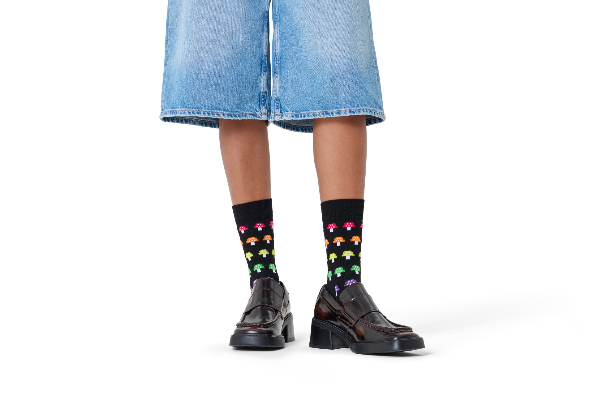 Ετοιμαστείτε να διασκεδάσετε με την κάλτσα μας με ρίγες σε σχήμα μανιταριού. Αυτές οι έντονες, μαύρες κάλτσες διαθέτουν πολύχρωμες ρίγες σε σχήμα μανιταριού, προσθέτοντας μια παιχνιδιάρικη πινελιά σε ένα κλασικό ριγέ σχέδιο. Μας ενδιαφέρει η αυθεντική αυτοέκφραση και αυτές οι φανταχτερές κάλτσες είναι ο ιδανικός τρόπος για να αναδείξετε τη μοναδική σας προσωπικότητα. Οι ρίγες σε σχήμα μανιταριού διατρέχουν όλο το μήκος της κάλτσας, δημιουργώντας ένα ιδιόμορφο και εντυπωσιακό εφέ που σίγουρα θα τραβήξει τα βλέμματα. Προσθέστε μια πινελιά διασκέδασης στο ντύσιμό σας με αυτές τις μοναδικές κάλτσες. Τέλειο δώρο για: τον ιδιόρρυθμο καλοφαγά στη ζωή σας.