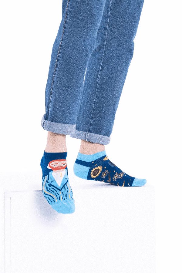 Αυτές είναι οι κάλτσες όπως στην εικόνα! Βάλτε το πρωτότυπο στα πόδια σας πριν κρέμονται οι αναπαραγωγές σχεδόν σε κάθε συρτάρι σε όλο τον κόσμο. Τα ηλιοτρόπια σας θυμίζουν την ιστορία της καλλιτεχνικής ιδιοφυΐας που μπορείτε να εκτιμήσετε κάθε πρωί. Ειδικά το καλοκαίρι που θα κιτρινίζουν υπέροχα στις κάλτσες σου σαν τον καλοκαιρινό ήλιο.