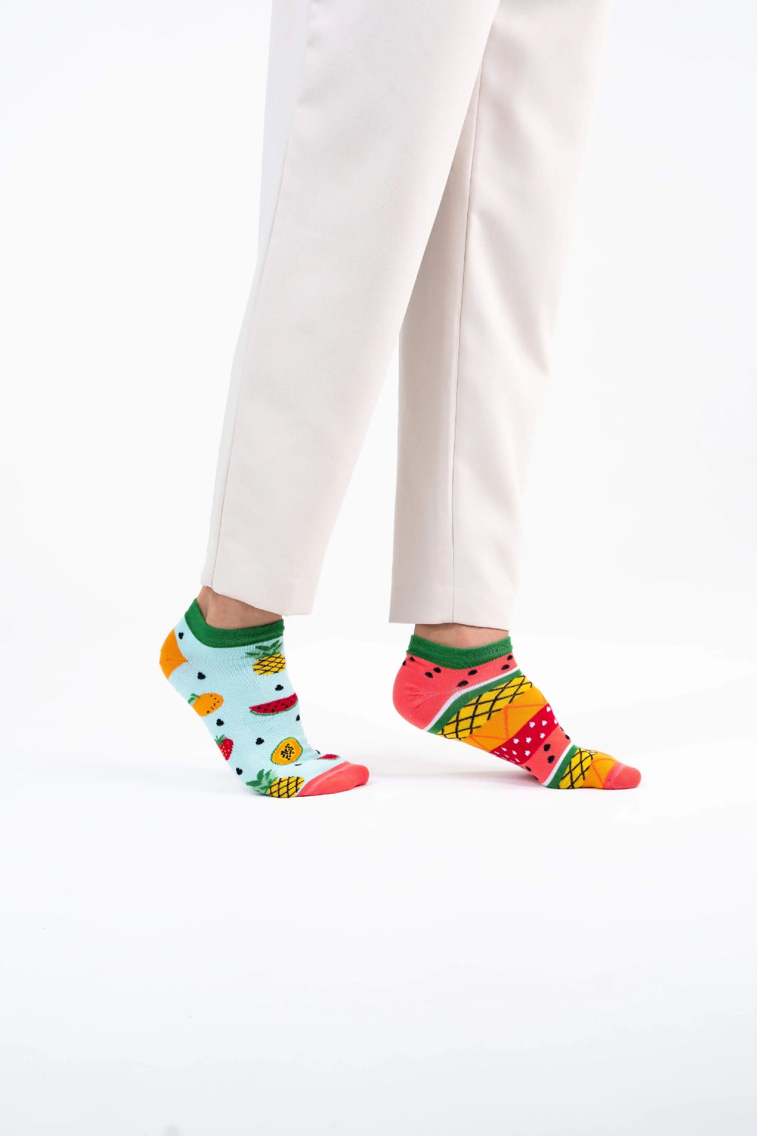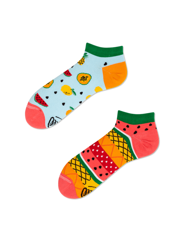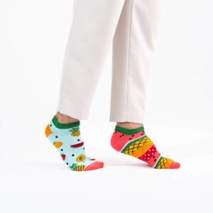 Αταιριασμένες κάλτσες με δώρα από φρούτα! Παραγγείλτε τα το καλοκαίρι, θα περάσετε τον χειμώνα με χρώμα! Μην περιμένετε για μπουφάν και κουβέρτες – πάρτε μερικά ζουμερά φρούτα! Σοβαρά, παραγγείλτε αυτές τις κάλτσες για να σας κάνουν να χάσετε το καλοκαίρι λίγο λιγότερο τον χειμώνα… Οι εύστοχες κάλτσες ποδιών Tutti Frutti θα είναι ένα όνειρο πραγματικότητα για κάθε λάτρη των φρούτων που του αρέσει η γεύση των πολωνικών φράουλων, μήλων και σμέουρων, καθώς και τροπικοί ανανάδες και πορτοκάλια και μπανάνες. Αυτή είναι μια φρουτοσαλάτα για αληθινούς γνώστες!